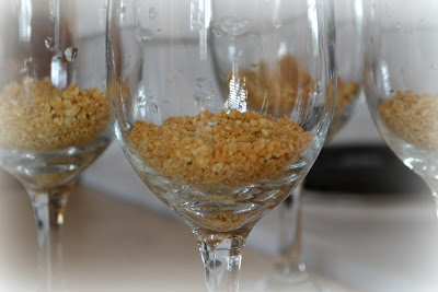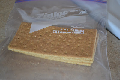 Today I'm super excited to be sharing a simple dessert with you all. The other night, I spontaneously made this for my family and they all (especially my 3 year old), loved it. When you read this recipe, I want you to remember that anyone can make something creative and cute. All you need to do is think outside of the box and have fun!Add 2 tablespoons of melted butter to the bag. Reseal the bag and mix the graham cracker crumbs and butter around until thoroughly combined. Scoop the mixture into 4 glass dishes (I used wine glasses and they worked great). Lightly press the graham cracker crust into the dishes with your fingers.
