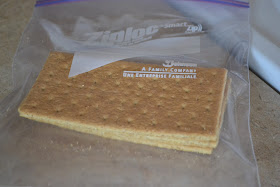 Today I'm super excited to be sharing a simple dessert with you all. The other night, I spontaneously made this for my family and they all (especially my 3 year old), loved it. When you read this recipe, I want you to remember that anyone can make something creative and cute. All you need to do is think outside of the box and have fun!Add 2 tablespoons of melted butter to the bag. Reseal the bag and mix the graham cracker crumbs and butter around until thoroughly combined. Scoop the mixture into 4 glass dishes (I used wine glasses and they worked great). Lightly press the graham cracker crust into the dishes with your fingers.