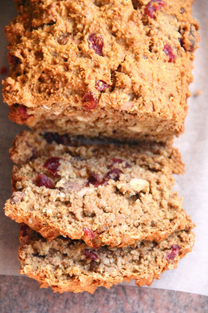 What are some of your resolutions? The most common is probably "eating better, ya da ya da ya da." AMIRIGHT? It's supposed that people lose motivation and are already slacking in their resolutions by the second week of January. So instead of going from the holidays and stuffing yourself to drinking 5 juices a day, I'd like to suggest easing into healthy eating. You're so much more likely to stick with it then! As we all know, breakfast is the most important meal of the day. And sadly, eating cookies or cake isn't the best way to rev up your metabolism first thing in the morning. I have a solution! MAKE THIS QUICK BREAD. It's super quick and easy, has only a few really basic ingredients, is healthy, and highly adaptable! For this one I used chopped nuts and cranberries, but you could chop up different nuts, use different dried fruit, and throw in some seeds for good measure. The world is at your fingertips.
